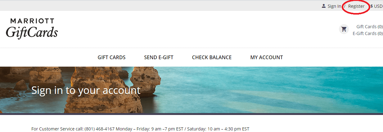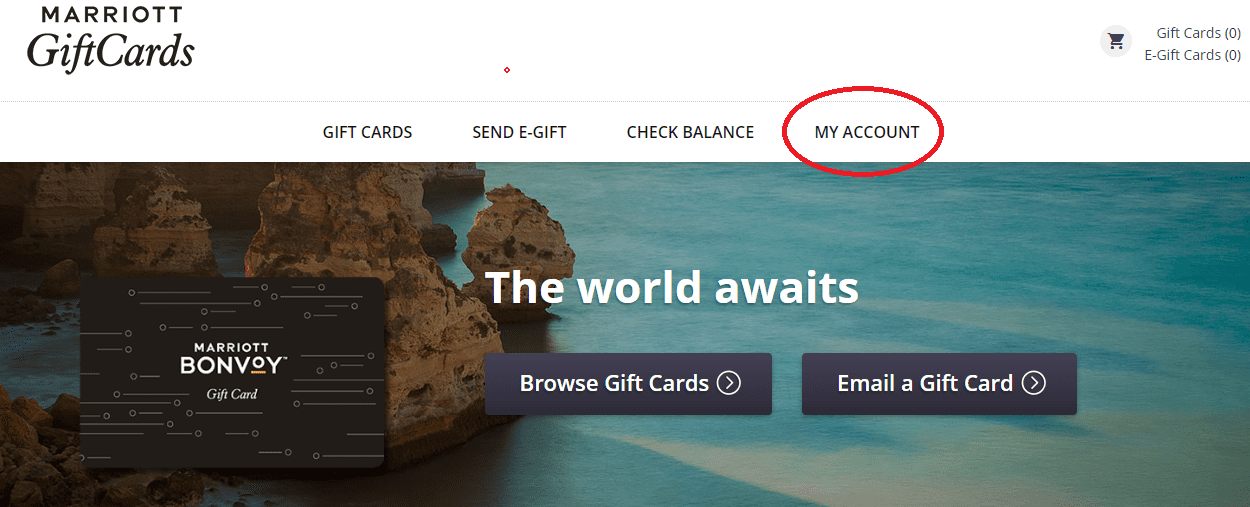 20%オフセールで購入したマリオットeギフトカード番号を公式サイトに登録しました。