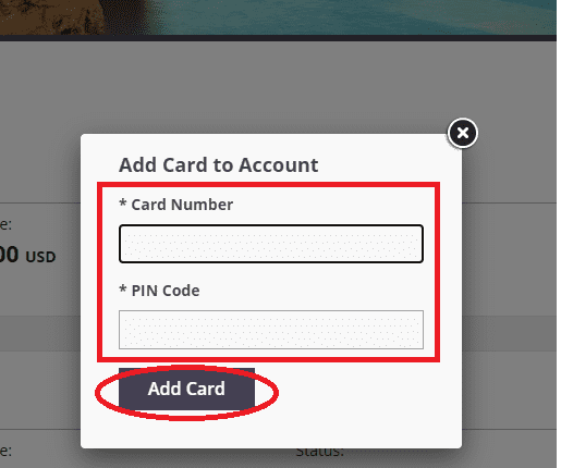 ⑤メールで届いたeギフトカードのカード番号とPINコードを入力して、「Add Card」をクリック
