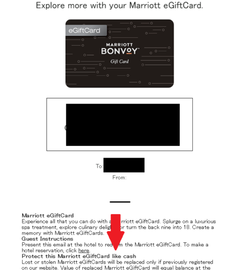 eギフトカード番号をマリオットギフトカードのサイトに登録しておけば、万が一紛失や盗難された場合に残高を補償してくれるので、ぜひ登録しておきましょう。
