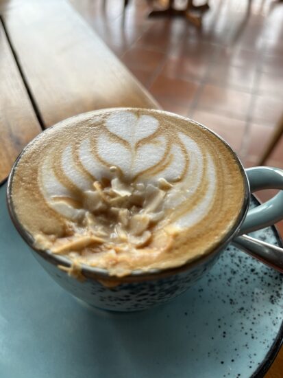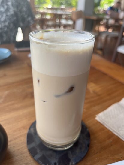 ラテも本格的。サトウキビのストローは口当たりがよくて大好きです。