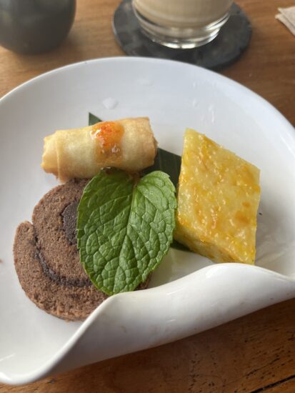 春巻き的なものとインドネシアのお菓子、チョコケーキ