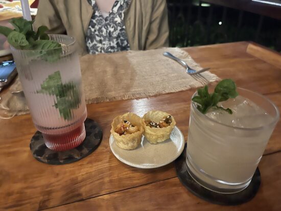 夕食時に無料でいただけるモクテルとカクテルを注文しました。
