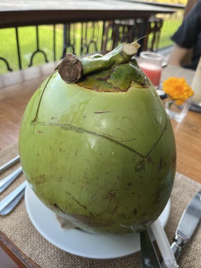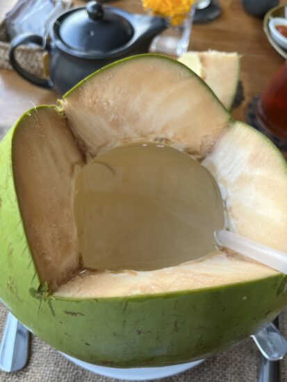 えっ、ココナッツってそうなの?と思いながら、レストランで朝食をいただいているとココナッツウォーターが出てきました。