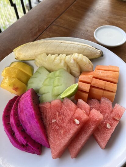 フルーツだけお願いするとスタッフにビックリされ、なんと沢山のフルーツが運ばれてきました。