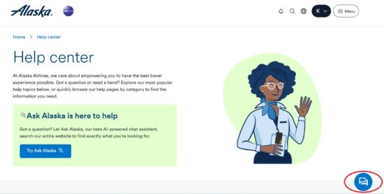 アラスカ航空へは、電話かチャット機能で問い合わせすることができます。