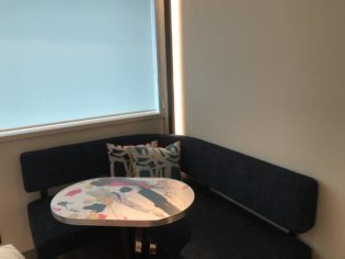 こちらの↓外が見える角ソファ席が居心地良いです。