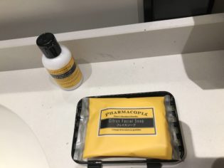 シンクは小ぶり。アメニティーは最小限のものが揃えられています。