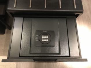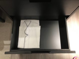 荷物置きの下の引き出しには、セーフティーボックスとパジャマが入っています。