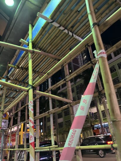 上記の緑のネットも見ていたし、街中いたるところに竹の足場は健在でしたので、ほんと心が痛みました。