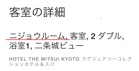 私名義の予約をアプリでチェックインすると既にニジョウルームにアサインされていました。有り難いです。
