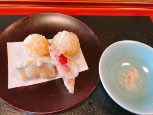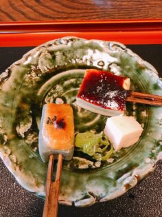 湯葉、茶碗蒸し、天婦羅、田楽、お茶漬け、ジェラートと様々なお豆腐料理を食べることができます。