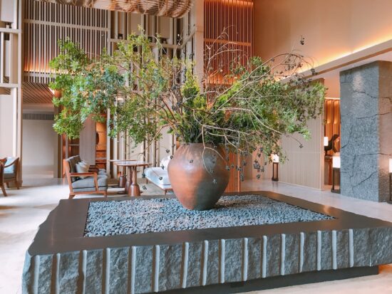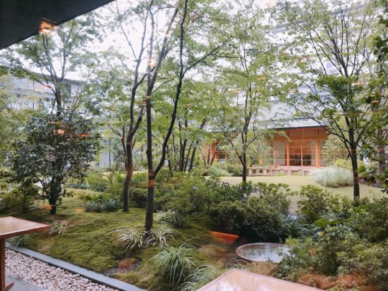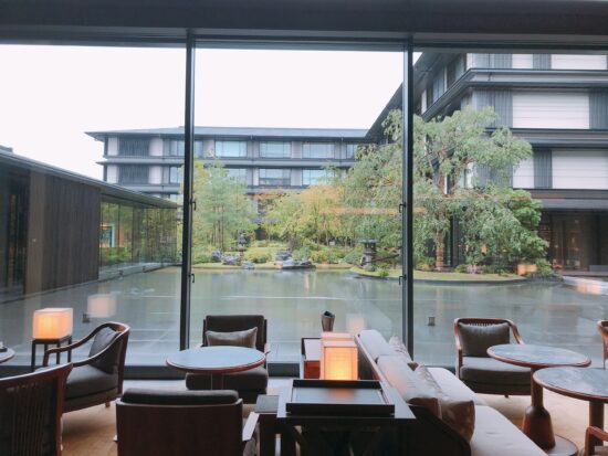 私が滞在したときは、とにかくお天気が悪く曇りか雨模様だったのですが・・・三井京都の中に入ってしまえば全くお天気が気にならず、雨でも美しい庭園に癒されました。ホテル内はどこもかしこも手が行き届いていて美しいの一言です。
