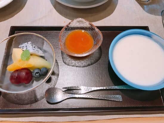 コロナ禍でインルームで朝食をいただけるのは安心感がありますが、お庭を眺めながらいただく朝食も格別でした。