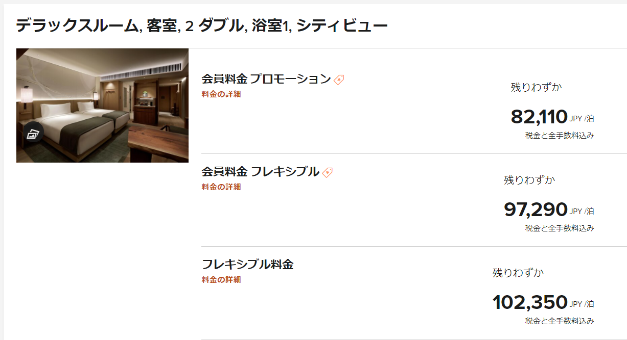 ちなみに三井京都の8月の客室料金は以下の通りです。