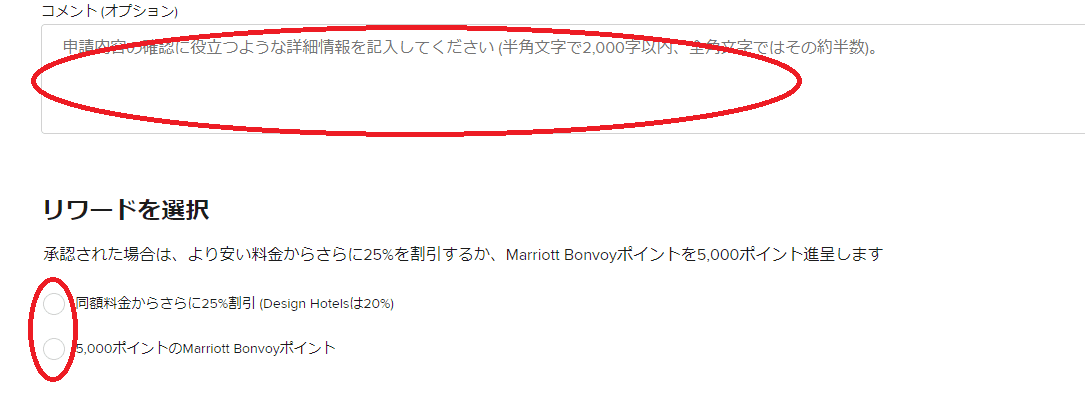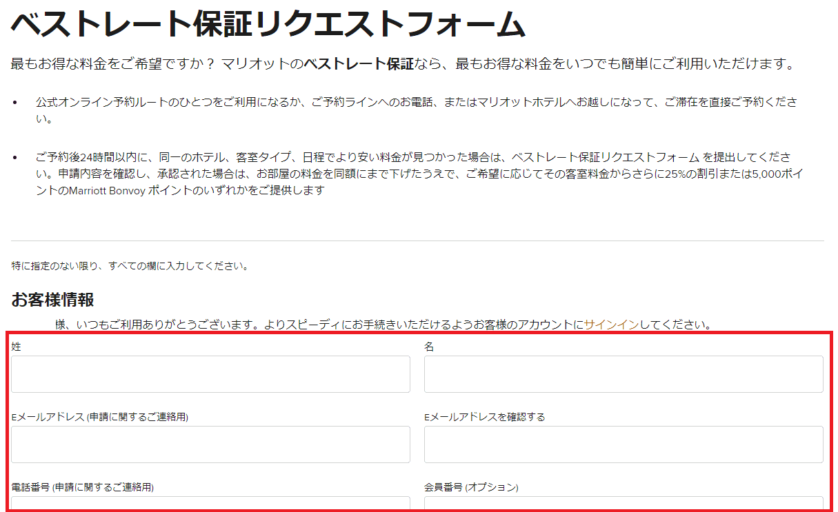 - マリオット公式サイトで予約を入れてから24時間以内に申請をしなくてはいけない