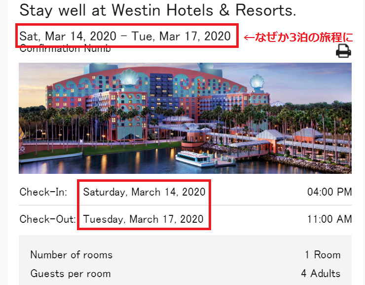 そもそも、WDW公式ホテルに宿泊する気でしたが、スワンの立地の良さとWDW公式ホテルよりもお値段が安いことからスワンを検討し始めました。その後、スワンがマリオット系列と知り、このとき既にSPGアメックスを発行していたので、会員特典を活かすためにマリオット公式サイトより予約をすることになりました。