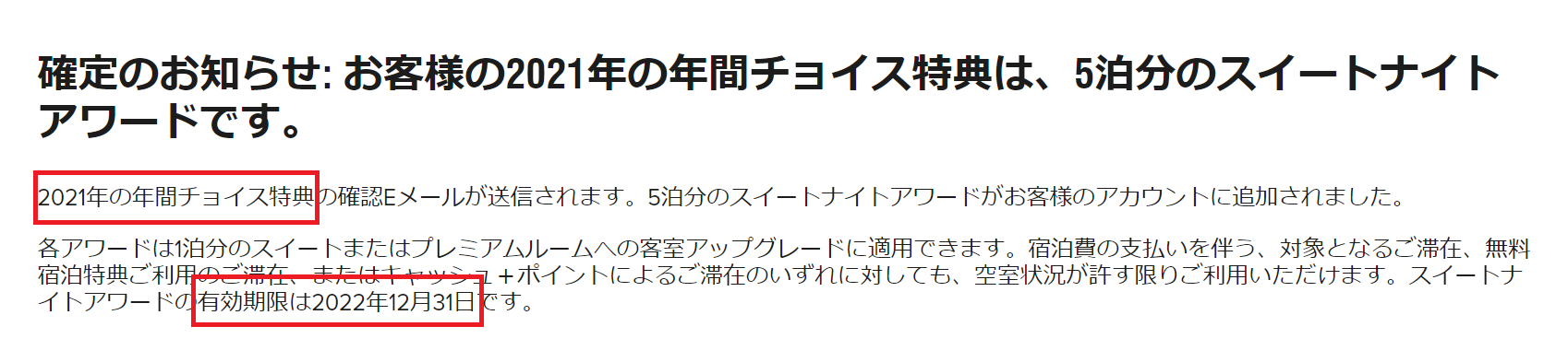 2021年に獲得した年間チョイス特典の有効期限は、2022年12月31日までとなります。