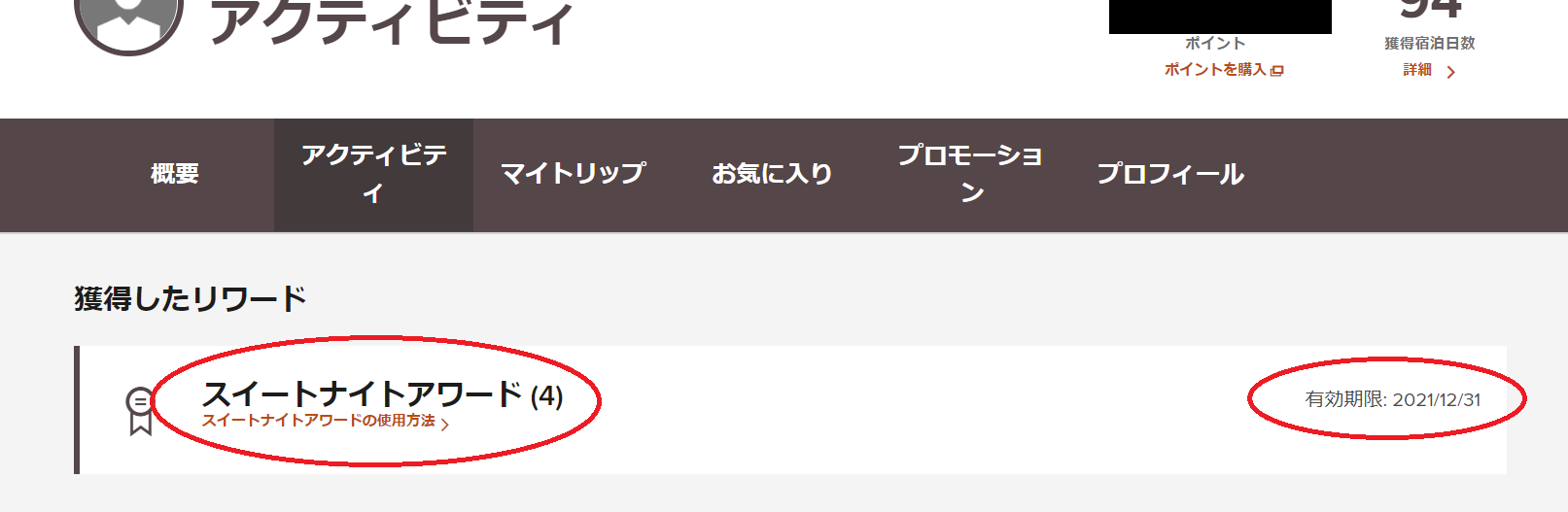 SNA(スイートナイトアワード)有効期限と残数の確認方法