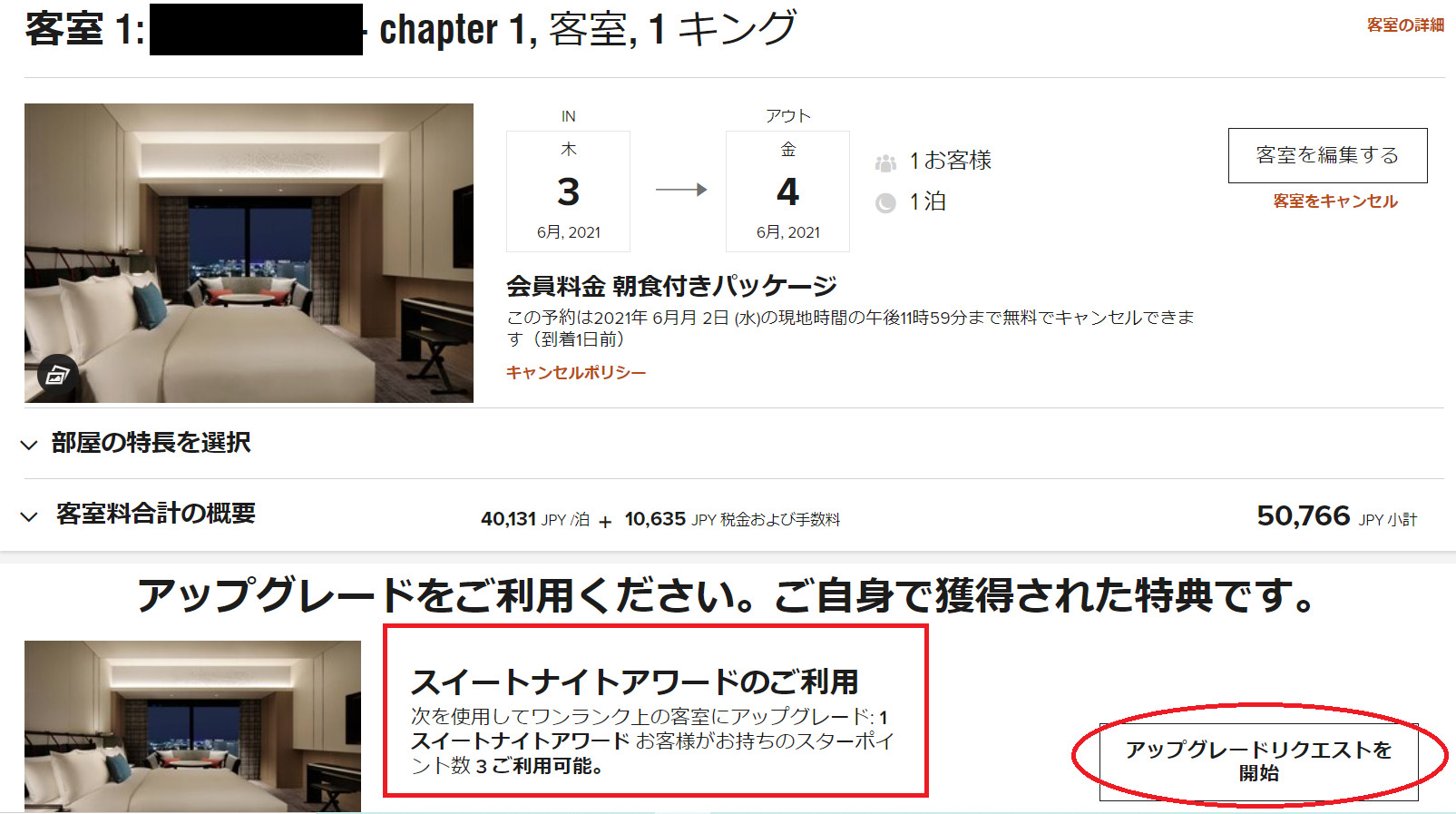 - 5泊分のスイートナイトアワード(SNA)を獲得し、スイートもしくはプレミアムルームへのアップグレード