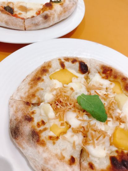 季節限定のマンゴーココナッツピザは非常に微妙なお味でした・・・