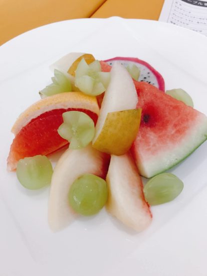 カットフルーツは美味しそうに盛り合わせしてくれます。スタッフによっては「苦手なフルーツはありますか?」と聞いてくれます。